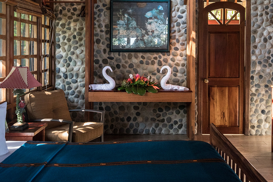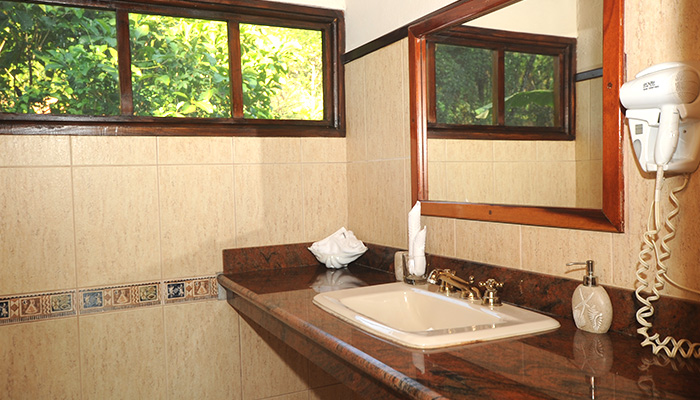 As with all rooms at Aguila de Osa, the Deluxe room features generously appointed interiors with either a single king or two queen size beds, ceiling fans, screened windows on three sides, beautiful bathroom accentuated in Italian tile and granite counter, stylish bathroom fixtures, and the full range of amenities to make your stay truly enjoyable.